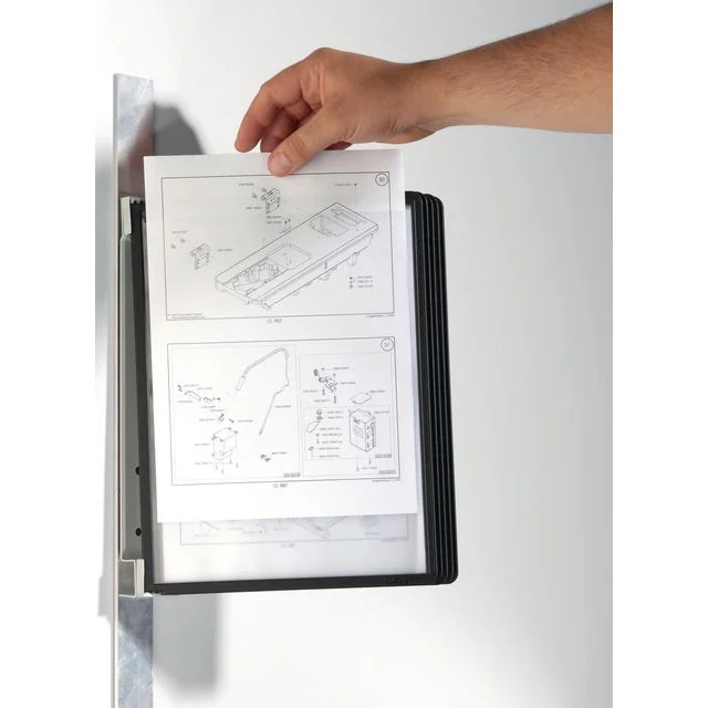 De magnetiske Durable VARIO®-veggbrakettene har fem SHERPA®-infopaneler for å formidle informasjon på en enkel måte. Denne magnetiske Durable VARIO®-veggbraketten passer i utstillingslokaler for å vise kataloger og brosjyrer.