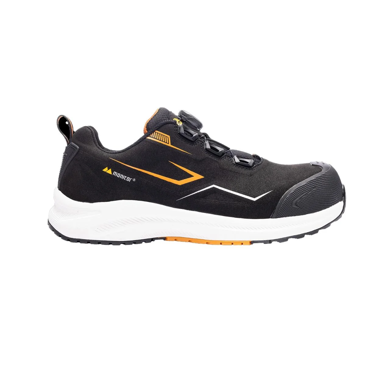 Monitor Recharge One er en moderne og metallfri vernesko med bred passform, spesielt utviklet for deg som jobber aktivt gjennom hele dagen. Skoen har kompositt-tåhette og APT-spikertrampbeskyttelse for maksimal sikkerhet uten ekstra vekt. Overdelen i slitesterk mikrofiber med gummiforsterkning gir både holdbarhet og fleksibilitet. EVA-mellomsåle og nitrilgummi-yttersåle gir god støtdemping og høy varmebestandighet. Med det brukervennlige BOA® Fit System er det enkelt å få perfekt passform – hver gang. – Kompositt-tåhette og metallfri APT-spikertrampbeskyttelse – Overdel i slitesterk mikrofiber med gummiforsterkning – BOA® Fit System for rask og sikker lukking – Lett vekt: 550g per par – Yttersåle i varmebestandig nitrilgummi (HRO) – ESD-godkjent og sklisikker såle (SR) – Anti-skli beskyttelse: SR – Godkjent i henhold til EN ISO 20345:2022 – klasse S3S – Passform: Bred – Modell: Unisex
