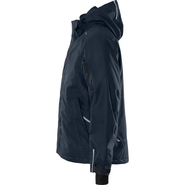 Vanntett vinterjakke laget av vindtett og pustende Airtech®-materiale med teipede sømmer. Funksjonell arbeidsjakke med myk vattert polstring for å holde deg varm og komfortabel. Designet med praktiske lommer og funksjoner for å gjøre det daglige arbeidet enklere under kalde forhold. Med Airtech®-materiale og teipede sømmer gir den optimal beskyttelse mot regn og vind, mens det quiltede fôret sørger for varme og komfort. Jakken har en avtakbar og justerbar hette, fleecefôret krage og flere lommer, inkludert brystlomme, kartlomme og ermelomme med glidelås. Praktisk designet med forhåndsformede albuer, justerbare ermeender, elastiske innermansjetter med tommelgrep og refleksdetaljer som gir økt synlighet på mørke dager. – Vannsøyle: 10 000mm. – Pusteevne: RET <:15. - Farge: marineblå (F544). - Materiale: Airtech® 100% polyester. Fôr: 100% polyester vattert polstring. - Vekt: Ytterstoff 165 g/m². Fôr 190 g/m². - Godkjent i henhold til EN 342 og EN 343 klasse 4/1. Ytterstoff godkjent i henhold til EN 343 klasse 4/4. - Kategori: Alnaryd. - Sesong: Vinter. - Vask: Maks. vasketemperatur 60°C, normal prosess.