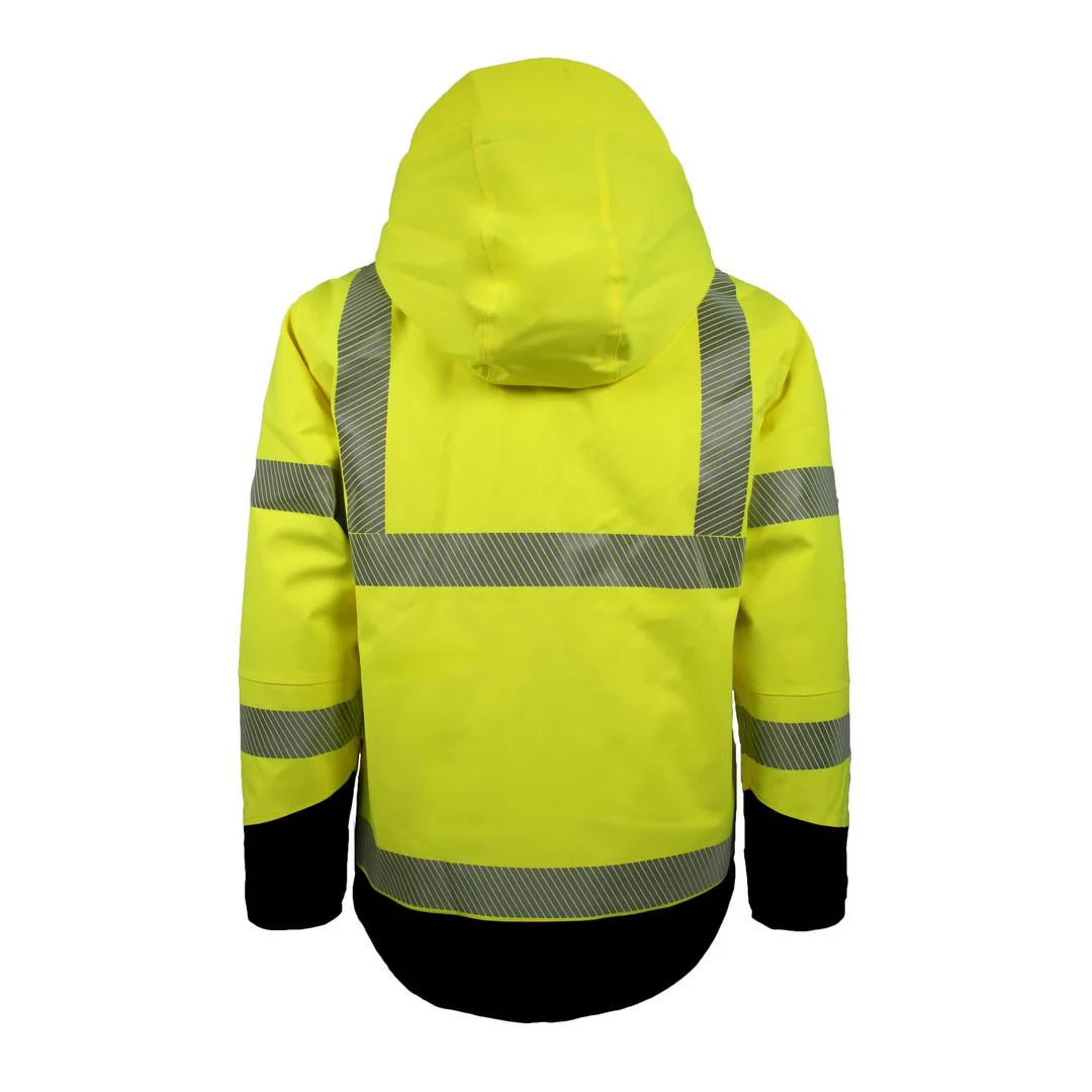 Designet inkluderer en stor avtakbar hette som passer over hjelm, myk fleece i kragen, og glidelås under ermene for ventilasjon. Praktiske detaljer som to innvendige lommer gir plass til det du trenger på jobb.