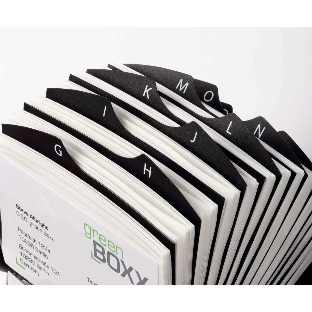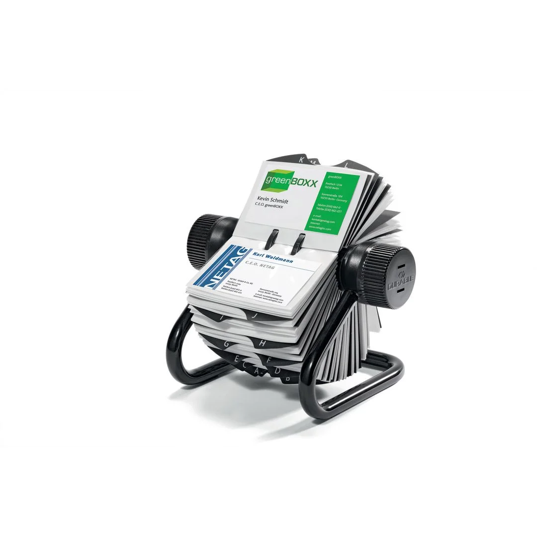 Få orden på visittkortene dine med praktiske og stilige løsninger som passer dine behov Praktisk oppbevaring og organisering av visittkort. Rullekartotekløsning med 200 avtakbare plastlommer og 25 flyttbare registerfaner A-Å.