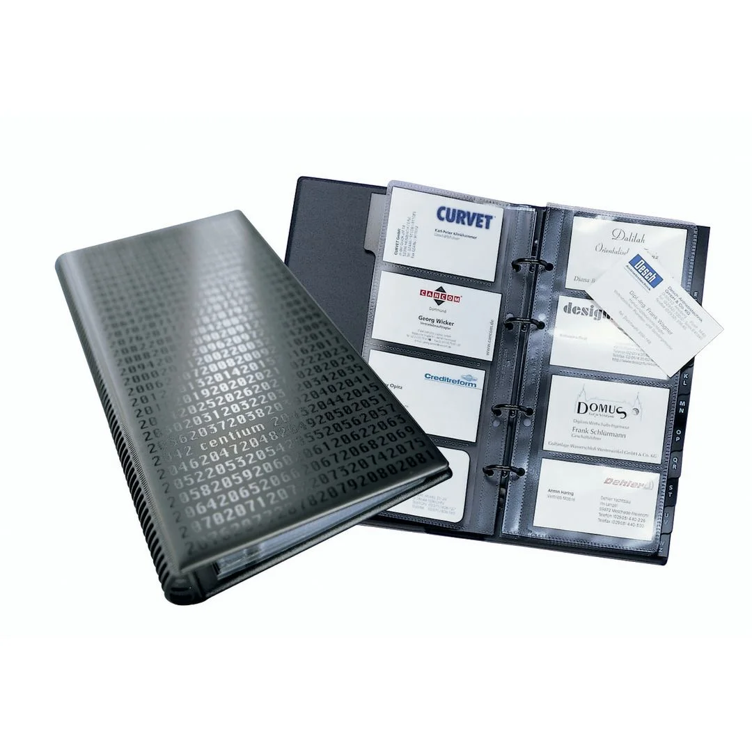 - Hold orden på dine kontakter med en klassisk ringperm med 25 lommer med plass til 200 visittkort i størrelsen 90x57mm.