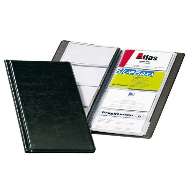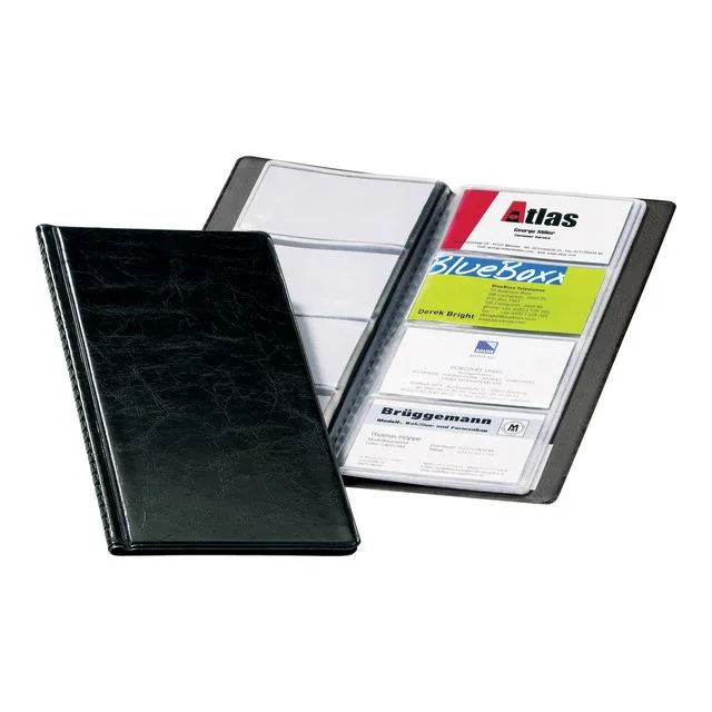 Den slanke designen er enkel å håndtere og har et elegant deksel, mens 12 sider gir rom for oppbevaring av opptil 96 kort. Sidene i denne Visifix-visittkortholderen er gjennomsiktige for enkel visning uten å måtte fjerne kortet. Oppbevar visittkort fra turer og møter 12 sider har plass til opptil 96 kort Slank design med omslag av imitert skinn.