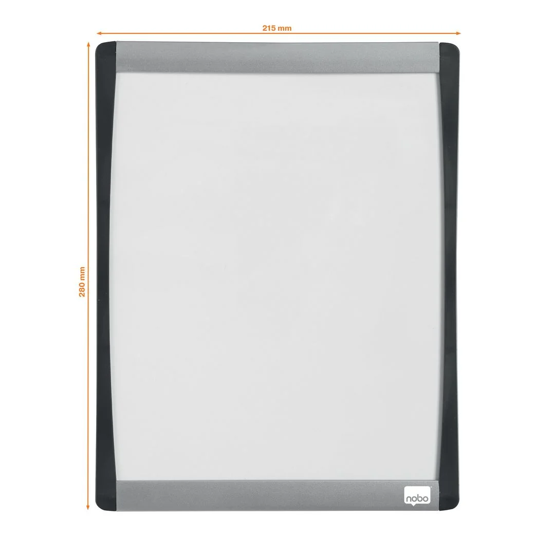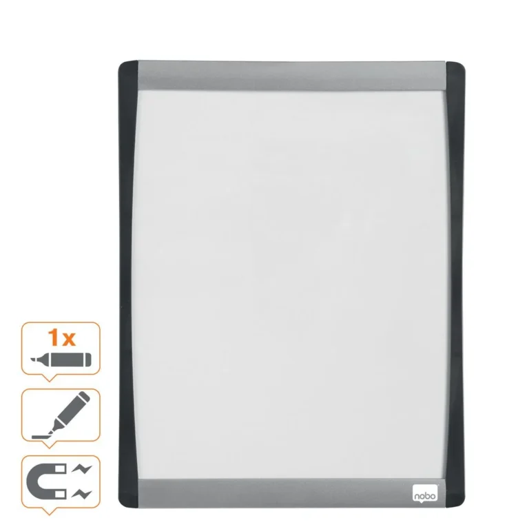 Med sin stilige sølv og svarte buede ramme passer tavlen inn i ethvert hjemmekontor eller hjemmemiljø. Veggmonterbar med limputer og magneter for metalloverflater som kjøleskap, kan monteres i stående eller liggende retning.