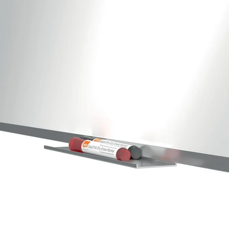 Tynn ramme gir større skriveflate og romslig hylle for penner og tilbehør som ikke tar plass fra skriveflaten. Hjørne-oppheng Den magnetiske emaljerte overflaten gir en svært enkel avtørking Pennehylle medfølger.
