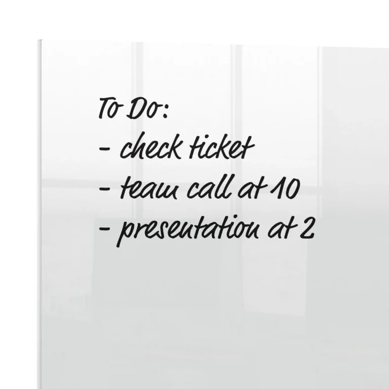 Med sin gjennomsiktige design smelter tavlen sømløst inn i bakgrunnen når det ikke er i bruk, og overflaten kan lett tørkes av, så skriv, tørk av og start på nytt. Leveres med en whiteboardpenn. Mini-tavle med moderne rammeløs design som enkelt kan tørkes av og brukes igjen Leveres med whiteboardpenn og selvklebende monteringsputer 1 års garanti på overflaten.