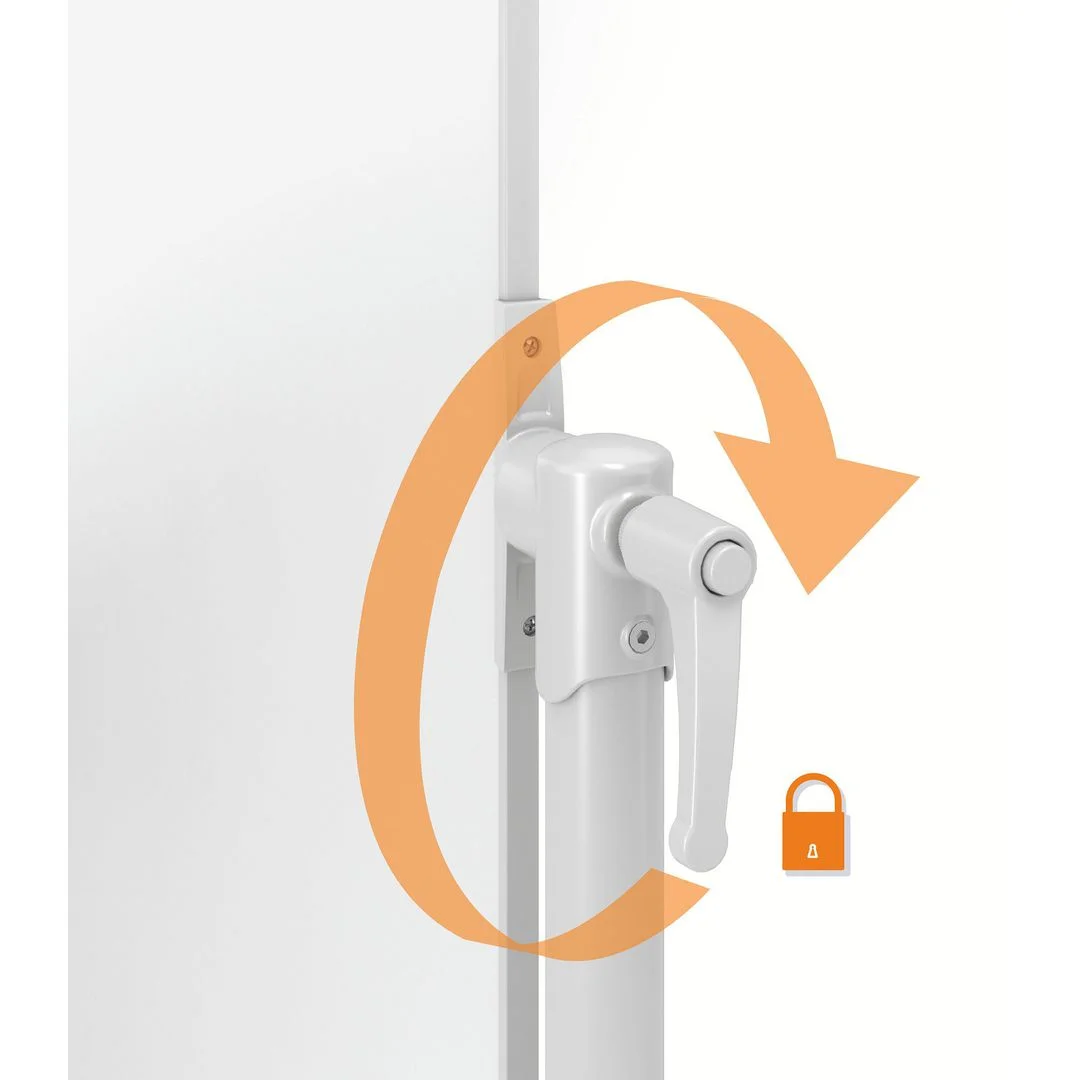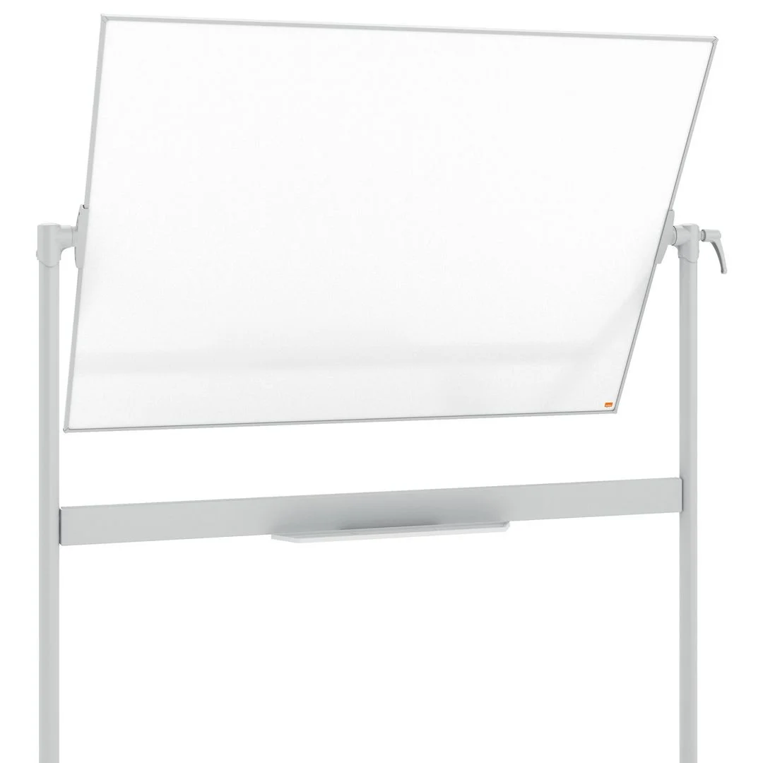 En praktisk løsning hvis veggplass er begrenset. Solide hjul gjør den enkel å flytte på. Den magnetiske emaljerte overflaten gir en svært enkel avtørking Tavlene er meget godt egnet for regelmessig bruk Slank aluminiumsramme i høy kvalitet gir utvidet skriveflate Horisontal hengsling gir mindre plassbehov for å vende Leveres med en Nobo whiteboardpenn 25 års garanti på den emaljerte overflaten Låsbare hjul Video.