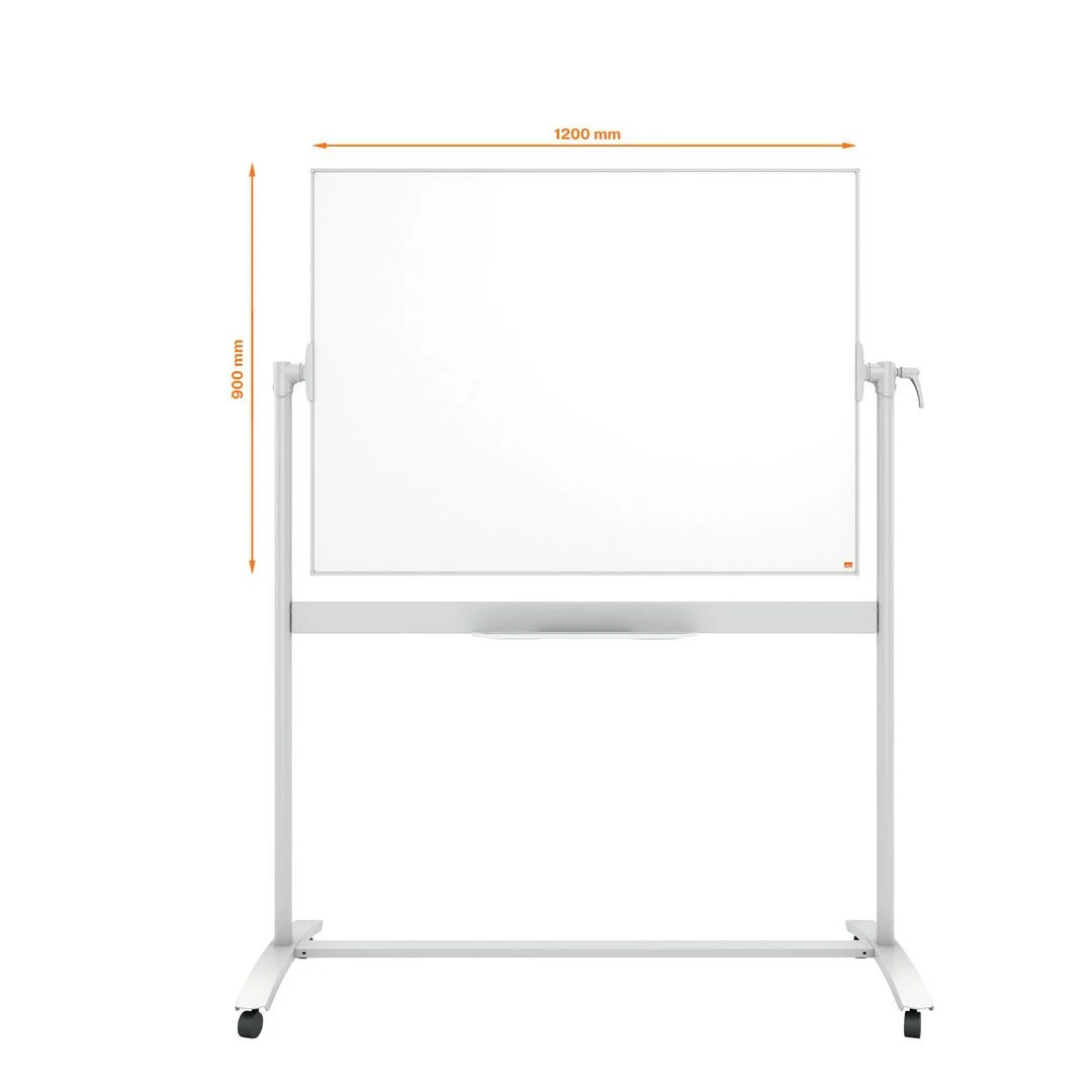 Nobo Classic mobilt whiteboard med emaljert overflate. Den moderne, tynne rammen gir større skriveflate og romslig hylle for penner og tilbehør som ikke tar plass fra skriveflaten.